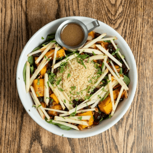 Mixed greens, apple, cranberry, pecans, butternut squash, quinoa, apple cider dressing