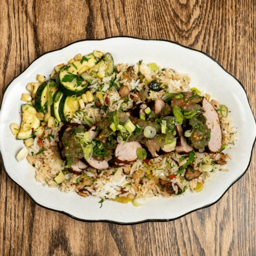 Pork tenderloin, seasonal chutney, dirty rice